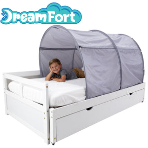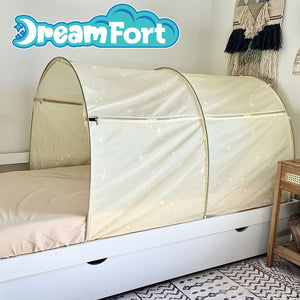 The DreamFort isn’t just a fort; it’s a portal to interstellar imaginations! Imagine your child’s bed enveloped in the embrace of the DreamFort, it’s glow-in-the dark stars bringing their bed to life every night. The DreamFort itself will become a celestial canvas for your child’s imagination as they gaze up at the shimmering stars, creating constellations in the night sky. With the DreamFort, bedtime will become a journey through the stars, where dreams are as vast and as limitless as the universe itself. Transform your child’s bedtime into a cosmic journey today!