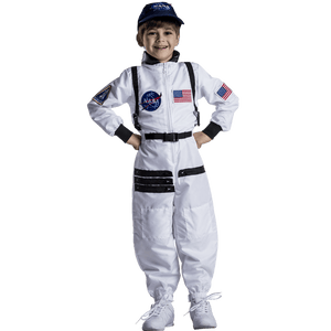 TO THE MOON... AND BACK Dreaming of being the next great astronaut? This cool and authentic costume is great for you and your new Space Shuttle AirFort. Hop into the Space Shuttle, and let your imagination take control. This super astronaut costume features official NASA patches and American Flags! Designed with plenty of zippers and buckles to complete the "realistic look".